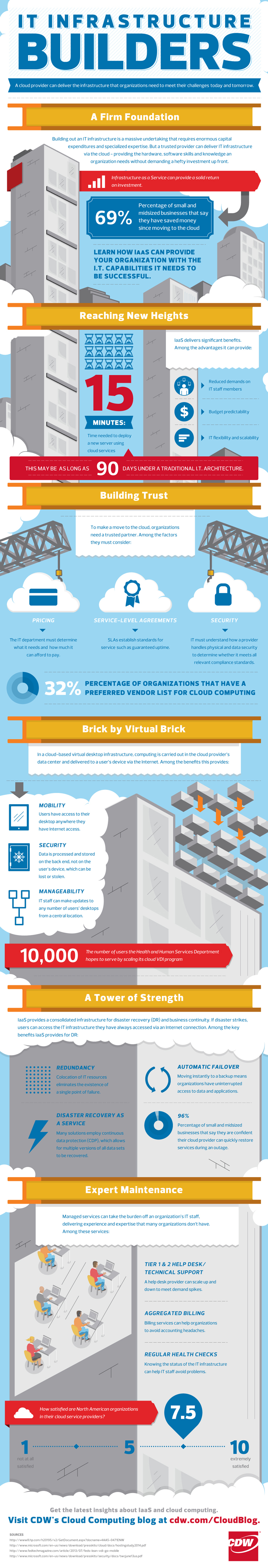 In an infographic from CDW, the company outlines how companies can benefit from using IaaS as the foundation of their business. Efficiency and rapid provisioning are one example of this. Businesses can deploy a new server in the cloud in 15 minutes, while provisioning a new server on traditional IT can take as long as 90 days.