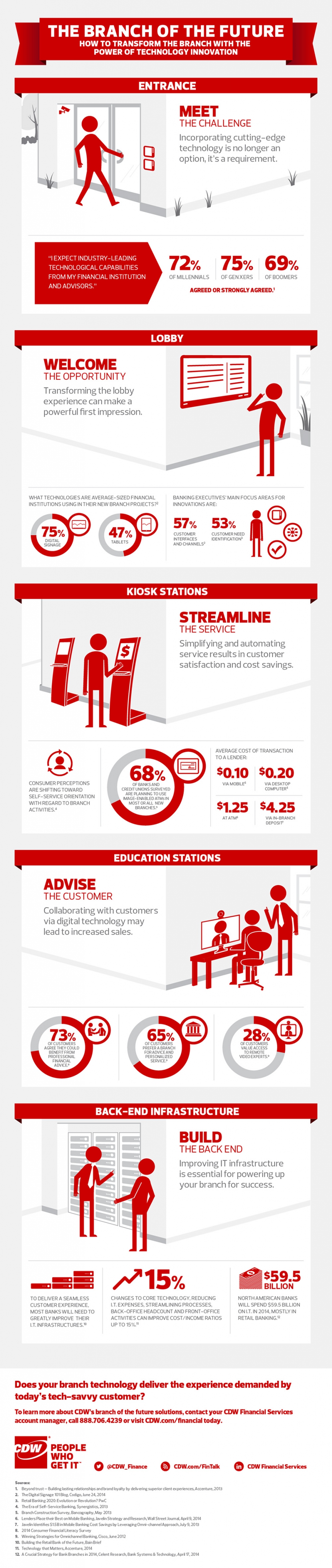 CDW's FinTalk Blog has assembled some key statistics and facts about the future of the branch into an infographic. Some key findings include: