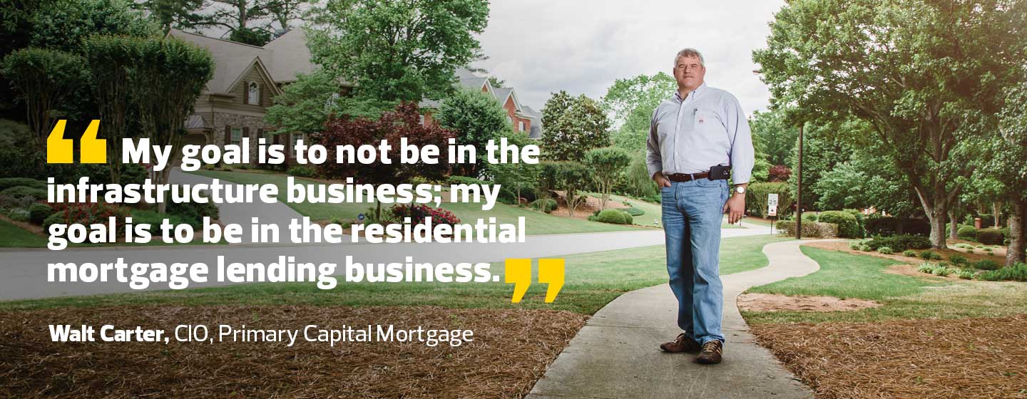 About 1,200 miles away in Georgia, Walt Carter made an equally gutsy move. The CIO for Primary Capital Mortgage moved every bit of IT supporting the Atlanta-based wholesale residential lender — except a very few file servers — to the cloud.