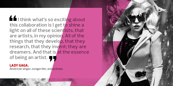“I think what’s so exciting about this collaboration is I get to shine a light on all of these scientists, that are artists, in my opinion. All of the things that they develop, that they research, that they invent; they are dreamers. And that is at the essence of being an artist,” said Gaga in a behind the scenes video from Intel.
