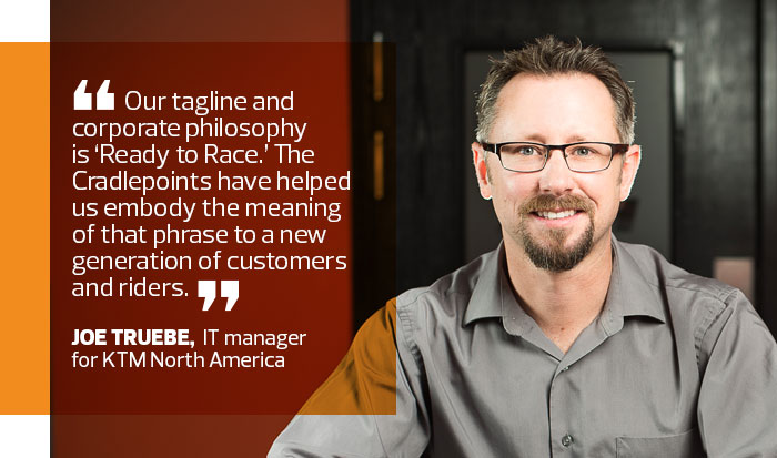 “Our tagline and corporate philosophy is ‘Ready to Race,’ ” Truebe says. “The Cradlepoints have helped us embody the meaning of that phrase to a new generation of customers and riders.”