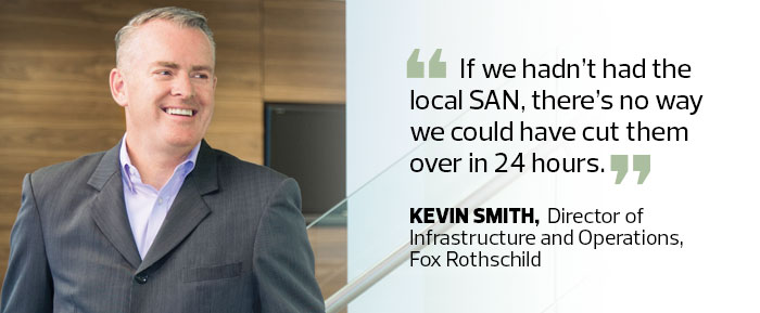 That’s the same strategy that Smith takes at Fox Rothschild. The aim is to minimize downtime and give employees at acquired firms access to their data as quickly as possible, he says. To that end, the IT team will install a temporary storage area network at a new office, begin backing up data and then replicate that data back to the firm’s central data center.