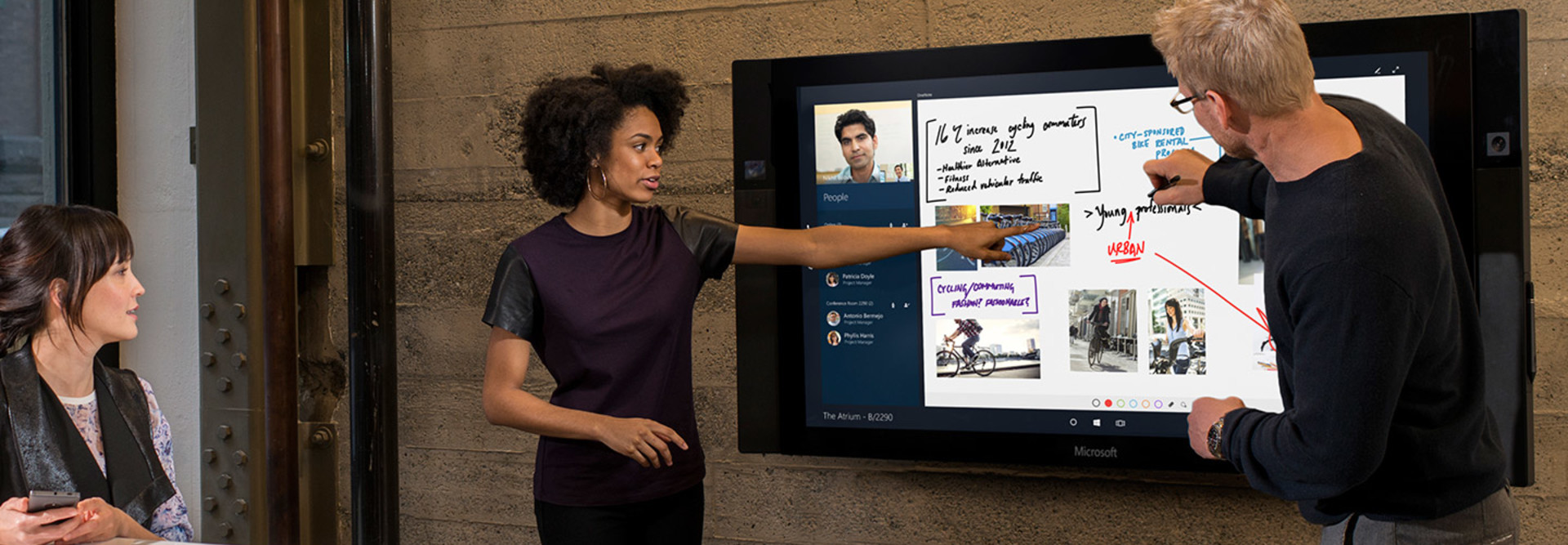 Although it is still a nascent device category (without a defined name), the large-screen touch screen technology is becoming more common. These devices are designed for users in offices to enhance collaboration and content creation, but can also be used as a way for customers to interact with businesses.